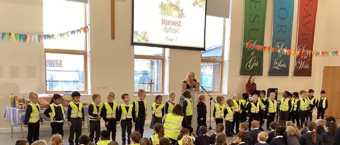 On Monday, the whole school gathered in Horley Baptist Church for our annual Harvest festival.